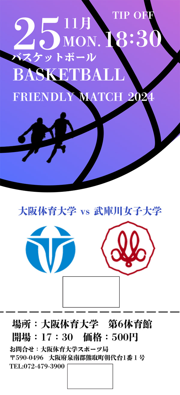 11月25日(月)、本学第6体育館にて、バスケットボール部女子交流戦「フレンドリーマッチ2024 澳门皇冠体育_皇冠篮球比分-赌场*官网×武庫川女子大学」を開催いたします。